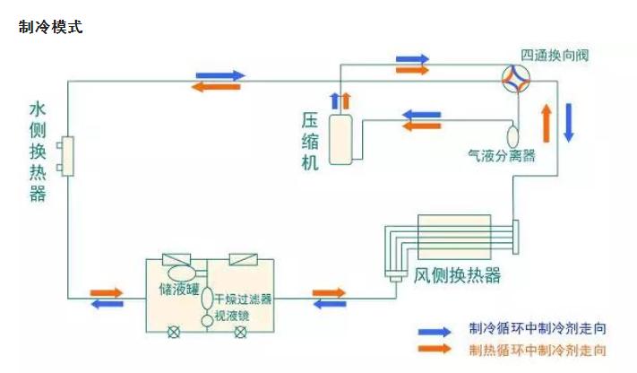 風(fēng)冷熱泵是以空氣作為冷熱源的熱泵系統(tǒng)。夏季制冷工況下,室外機(jī)扮演冷凝器角色,將壓縮機(jī)輸出的高溫高壓制冷劑冷卻放熱;室內(nèi)機(jī)則作為蒸發(fā)器,促使低溫低壓制冷劑蒸發(fā)吸熱,實(shí)現(xiàn)降溫除濕效果。冬季供暖時(shí),系統(tǒng)通過(guò)切換運(yùn)行模式,室外機(jī)轉(zhuǎn)為蒸發(fā)器吸收空氣熱量,室內(nèi)機(jī)變?yōu)槔淠飨蚴覂?nèi)釋放熱量,完成制熱過(guò)程。這一過(guò)程中,風(fēng)冷熱泵僅需通過(guò)四通換向閥的切換,即可完成制冷與供暖工況的轉(zhuǎn)換,無(wú)需額外配置其他冷熱源,顯著提升了安裝與使用的便捷性。此外,因其采用電力驅(qū)動(dòng),僅需消耗少量電能,即可從空氣中提取數(shù)倍于輸入功的熱量,具備高能效比與低運(yùn)行成本的優(yōu)勢(shì)。